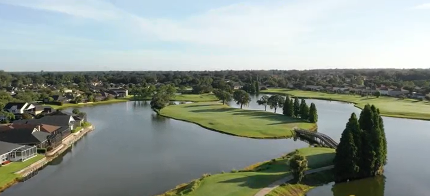 Hole #13 has a unique island fairway, water up the left side, and water up the right side places emphasis on putting the ball in play off the tee. A hazard area short of the green will take driver out of the play for longer hitters. Hit the fairway and you’ll be in prime position to attack the flag, the green slopes back to front, and upper level of the green is level, control the spin on the 2nd shot and you’ll be rewarded with a ball cozied close to the pin.